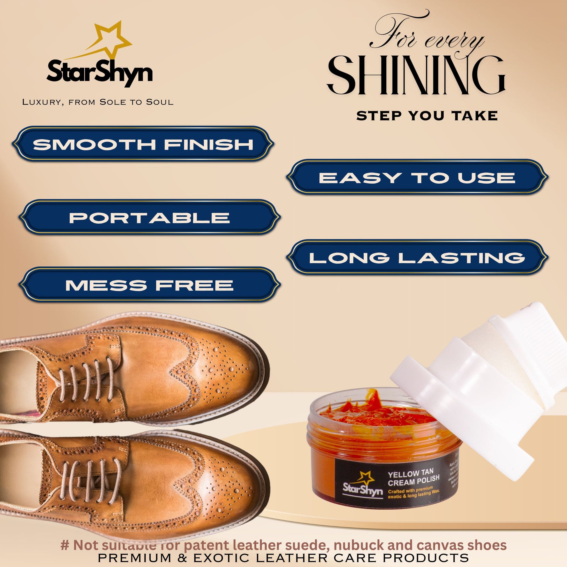 StarShyn Shoe Cream Polish - 50 ML | Enriched with Carnauba & Bees Wax |Natural Waxes Formula for Leather Shoes | Leather Shoe Cream Polish | Long-Lasting Shine